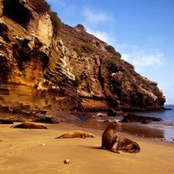 - Highlights: White sandy beach, sea lions, mockingbirds; snorkeling: colorful fish, sea lion nursery